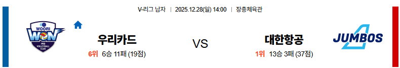 12월28일 우리카드:대한항공 V리그 분석 및 예측 스포츠중계:스포츠무료중계
