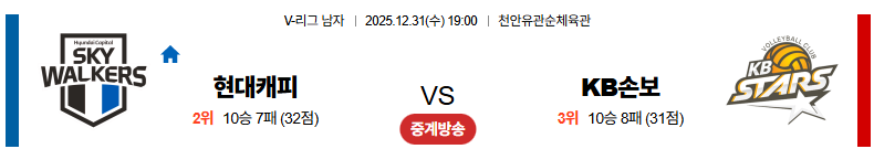 12월31일 현대캐피탈:KB손해보험 V리그 분석 및 예측 스포츠중계:스포츠무료중계