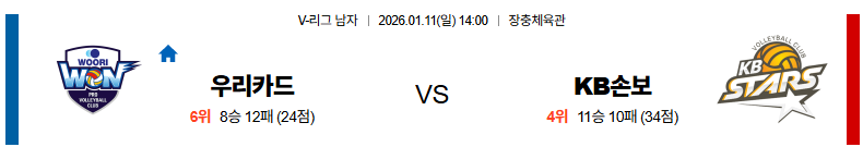 01월11일 우리카드:KB손해보험 V리그 분석 및 예측 스포츠중계:스포츠무료중계