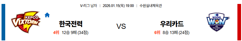 01월15일 한국전력:우리카드 V리그 분석 및 예측 스포츠중계:스포츠무료중계