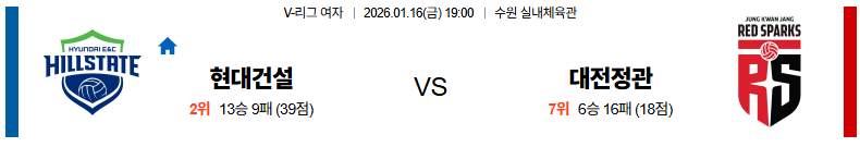 01월16일 현대건설:정관장 V리그(여) 분석 및 예측 스포츠중계:스포츠무료중계