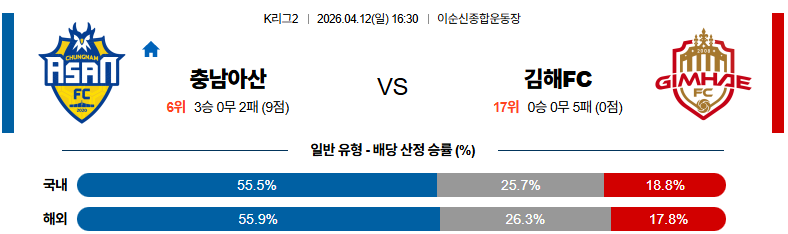 04월12일 충남아산:김해 K리그2 분석 및 예측 스포츠중계:스포츠무료중계