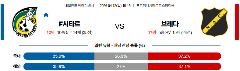 04월12일 F시타르:브레다 에레디비지 분석 및 예측 스포츠중계:스포츠무료중계