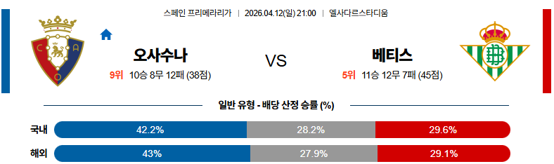 04월12일 베티스:오사수나 라리가 분석 및 예측 스포츠중계:스포츠무료중계