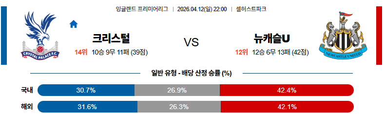 04월12일 크리스탈팰리스:뉴캐슬 프리미어리그 분석 및 예측 스포츠중계:스포츠무료중계