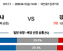 04월12일 대전:강원 K리그1 분석 및 예측 스포츠중계:스포츠무료중계