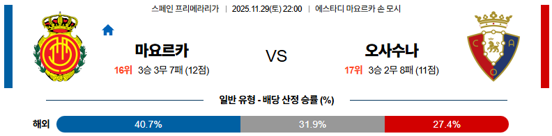 11월29일 마요르카:오사수나 잉글랜드챔피언쉽 분석 및 예측 스포츠중계:스포츠무료중계