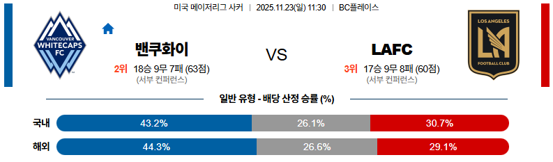 11월23일 밴쿠버:LAFC 메이저리그사커 분석 및 예측 스포츠중계:스포츠무료중계