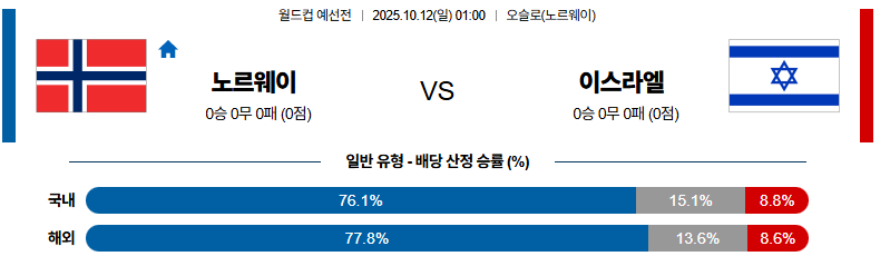 [FC LIVE] 노르웨이 대 이스라엘 월드컵예선전 10월12일 맞대결 생중계, 스포츠중계, 스포츠분석
