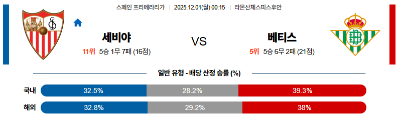 현재 12월01일 세비야:베티스 라리가 분석 및 예측 스포츠중계:스포츠무료중계