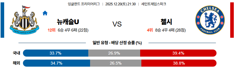 12월20일 뉴캐슬:첼시 프리미어리그 분석 및 예측 스포츠중계:스포츠무료중계