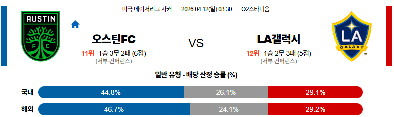 04월12일 오스틴:LA갤럭시 MLS 분석 및 예측 스포츠중계:스포츠무료중계