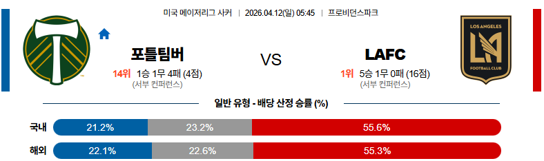 현재 04월12일 포틀랜드:LAFC MLS 분석 및 예측 스포츠중계:스포츠무료중계