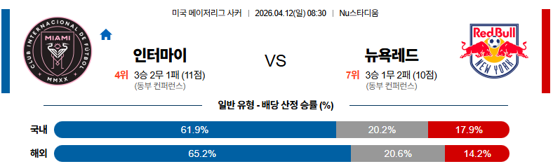 04월12일 인터마이애미:뉴욕레드불 MLS 분석 및 예측 스포츠중계:스포츠무료중계