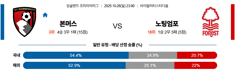 본머스 대 노팅엄 프리미어리그 10월26일 맞대결 생중계, 스포츠중계, 스포츠분석