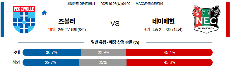 즈볼레 대 네이메헌 에레디비지에 10월26일 맞대결 생중계, 스포츠중계, 스포츠분석