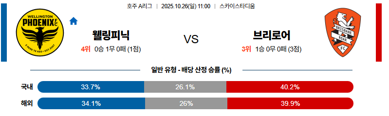 웰링턴피닉스 대 브리즈번로어 호주A리그 10월26일 맞대결 생중계, 스포츠중계, 스포츠분석