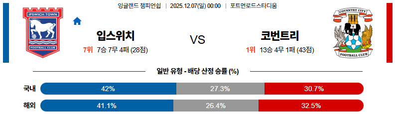 입스위치 대 코번트리 잉글랜드챔피언쉽 12월07일 맞대결 생중계, 스포츠중계, 스포츠분석