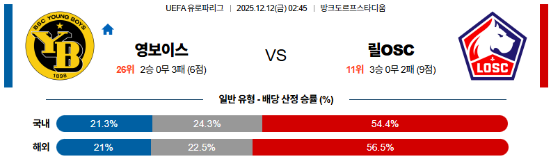 영보이즈 대 릴OSC UEFA유로파리그 12월12일 맞대결 생중계, 스포츠중계, 스포츠분석
