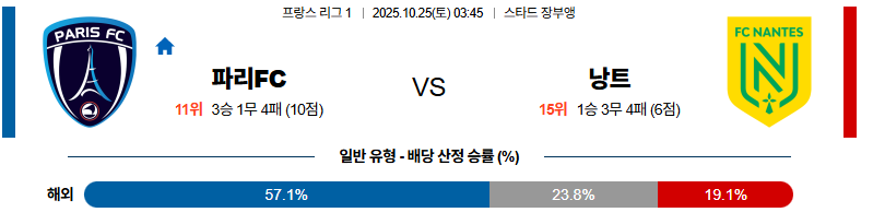 파리FC 대 낭트 리그앙 10월25일 맞대결 생중계, 스포츠중계, 스포츠분석