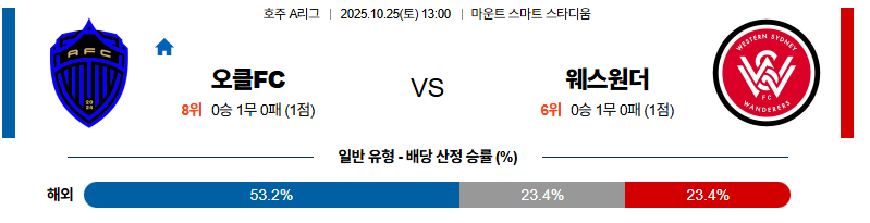 오클랜드FC 대 웨스턴시드니 호주A리그 10월25일 맞대결 생중계, 스포츠중계, 스포츠분석