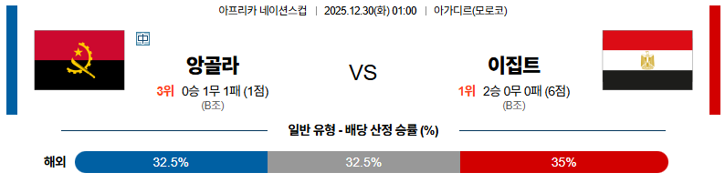 12월30일 앙골라:이집트 네이션스컵 분석 및 예측 스포츠중계:스포츠무료중계