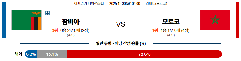 12월30일 잠비아:모로코 네이션스컵 분석 및 예측 스포츠중계:스포츠무료중계