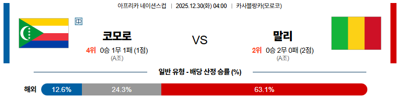 12월30일 코모로스:말리 네이션스컵 분석 및 예측 스포츠중계:스포츠무료중계