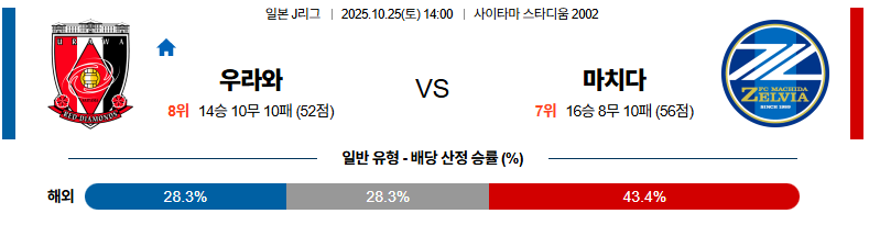 우라와 대 마치다 J리그1 10월25일 맞대결 생중계, 스포츠중계, 스포츠분석