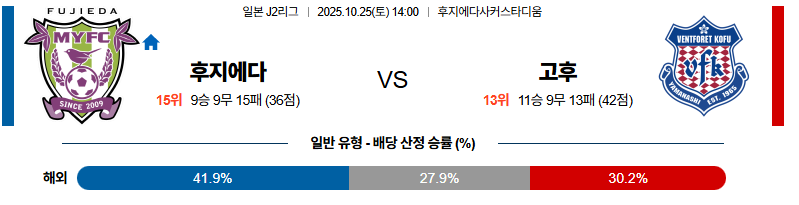 후지에다 대 반포레고후 J리그2 10월25일 맞대결 생중계, 스포츠중계, 스포츠분석