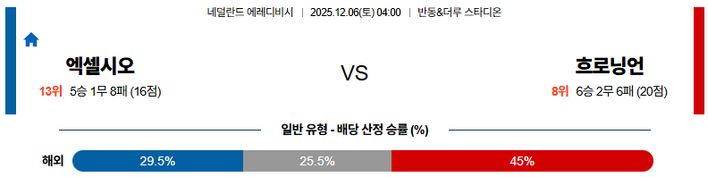 엑셀시오르 대 흐로닝언 에레디비지 12월06일 맞대결 생중계, 스포츠중계, 스포츠분석