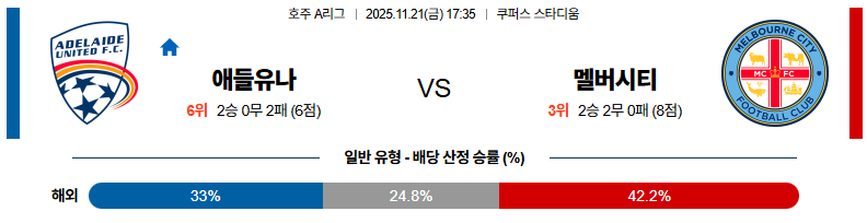 현재 11월21일 애들레이드:유나이티드 호주A리그 분석 및 예측 스포츠중계:스포츠무료중계