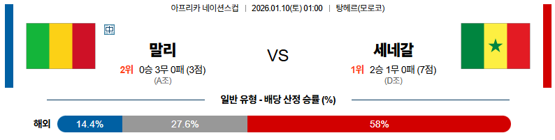 01월10일 말리:세네갈 네이션스컵 분석 및 예측 스포츠중계:스포츠무료중계