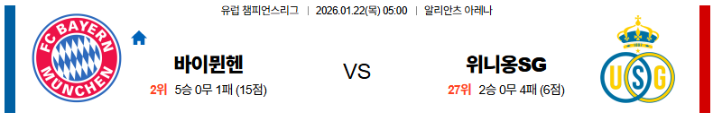 01월22일 뮌헨:위니옹 UEFA챔피언스리그 분석 및 예측 스포츠중계:스포츠무료중계