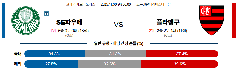 11월30일 파우메이라스:플라멩고 코파리베르타도레스 분석 및 예측 스포츠중계:스포츠무료중계