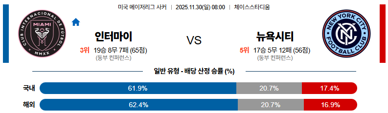 11월30일 인터마이애미:뉴욕시티 메이저리그사커 분석 및 예측 스포츠중계:스포츠무료중계