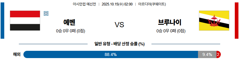 예멘은 공중전과 세컨드볼 싸움에서 우위를 보이며, 브루나이는 여전히 박스 재정렬 속도와 전환 대응에서 불안합니다. 이번에도 예멘의 연속 승리 가능성이 높습니다.