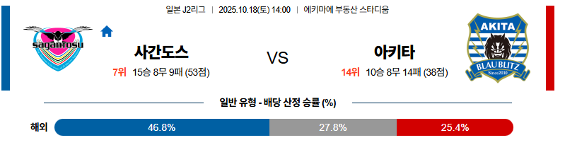 2025-10-18 [J리그2] 사간도스 VS 블라우블리츠 아키타 분석