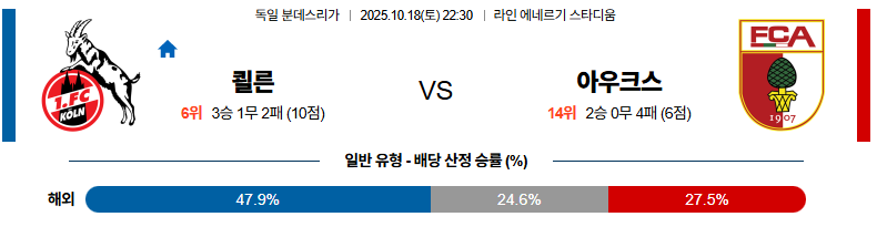 2025-10-18 [분데스리가] FC 쾰른 VS FC 아우크스부르크 분석