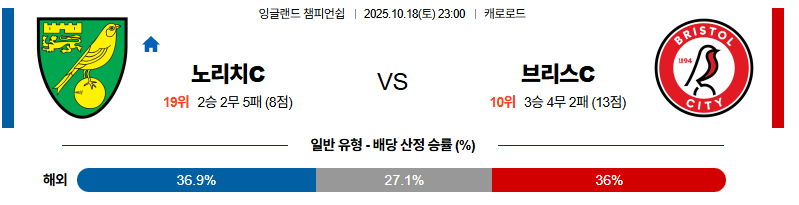 2025-10-18 [EFL 챔피언십] 노리치 시티 FC VS 브리스톨 시티 FC 분석