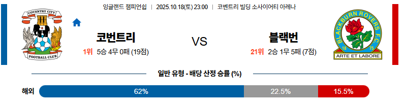 2025-10-18 [EFL 챔피언십] 코번트리 시티 FC VS 블랙번 로버스 FC 분석