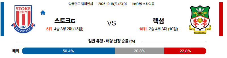 2025-10-18 [EFL 챔피언십] 스토크 시티 FC VS 렉섬 AFC 분석