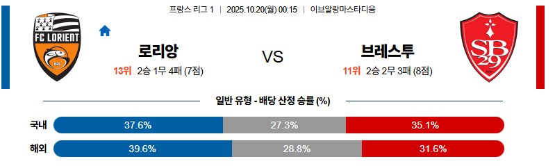[FC LIVE] 로리앙 대 브레스트 리그앙 10월20일 맞대결 생중계, 스포츠중계, 스포츠분석