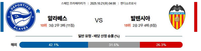 알라베스 대 발렌시아 라리가 10월21일 맞대결 생중계, 스포츠중계, 스포츠분석