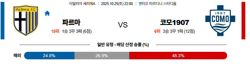 파르마 대 코모 세리에A 10월25일 맞대결 생중계, 스포츠중계, 스포츠분석