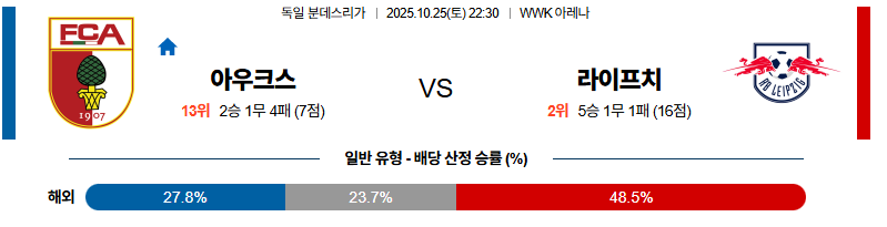 아우크스부르크 대 라이프치히 분데스리가 10월25일 맞대결 생중계, 스포츠중계, 스포츠분석