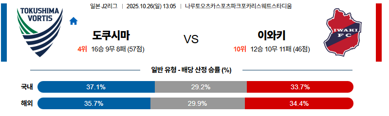 도쿠시마 대 이와키 J리그2 10월26일 맞대결 생중계, 스포츠중계, 스포츠분석