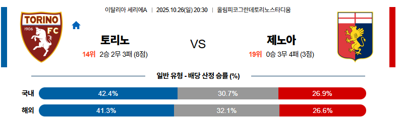 토리노 대 제노아 세리에A 10월26일 맞대결 생중계, 스포츠중계, 스포츠분석