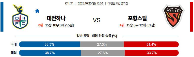 대전 대 포항 K리그1 10월26일 맞대결 생중계, 스포츠중계, 스포츠분석
