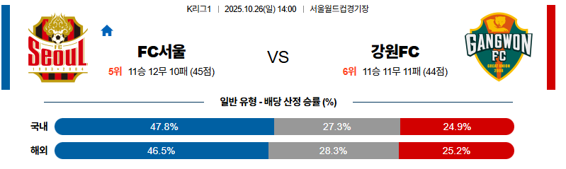 FC서울 대 강원 K리그1 10월26일 맞대결 생중계, 스포츠중계, 스포츠분석